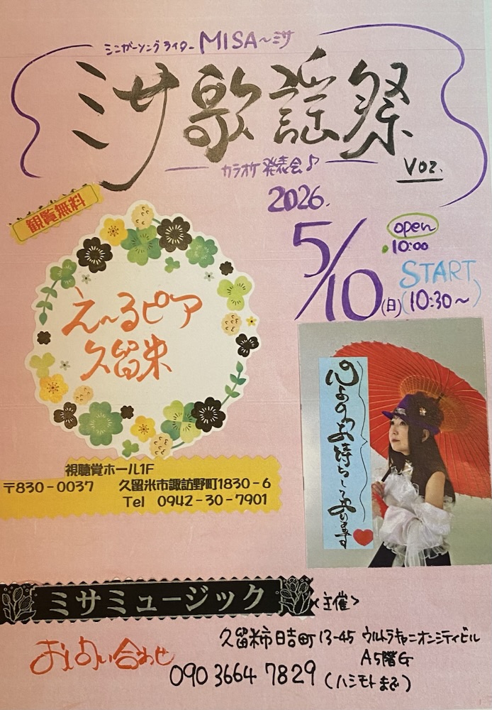 2026.5.10 「え〜るピア久留米」にて 開催致します(入場無料)